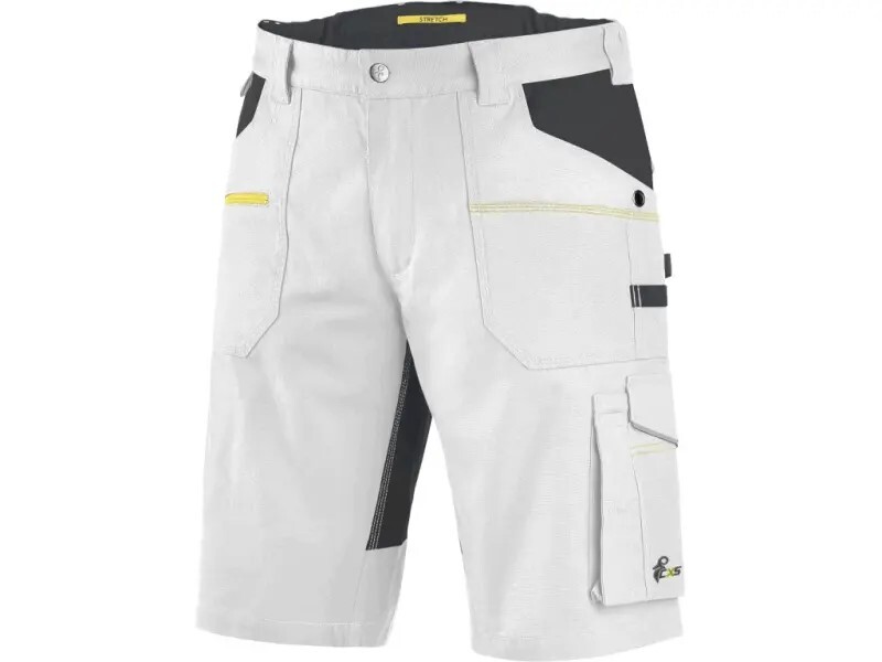 Pánské montérkové kraťasy, strečová tkanina umožňující volný pohyb, pas s poutky na opasek, přední kapsy s kapsou na zip, multifunkční kapsy na obou stranách, dvě zadní kapsy - jedna s klopou.