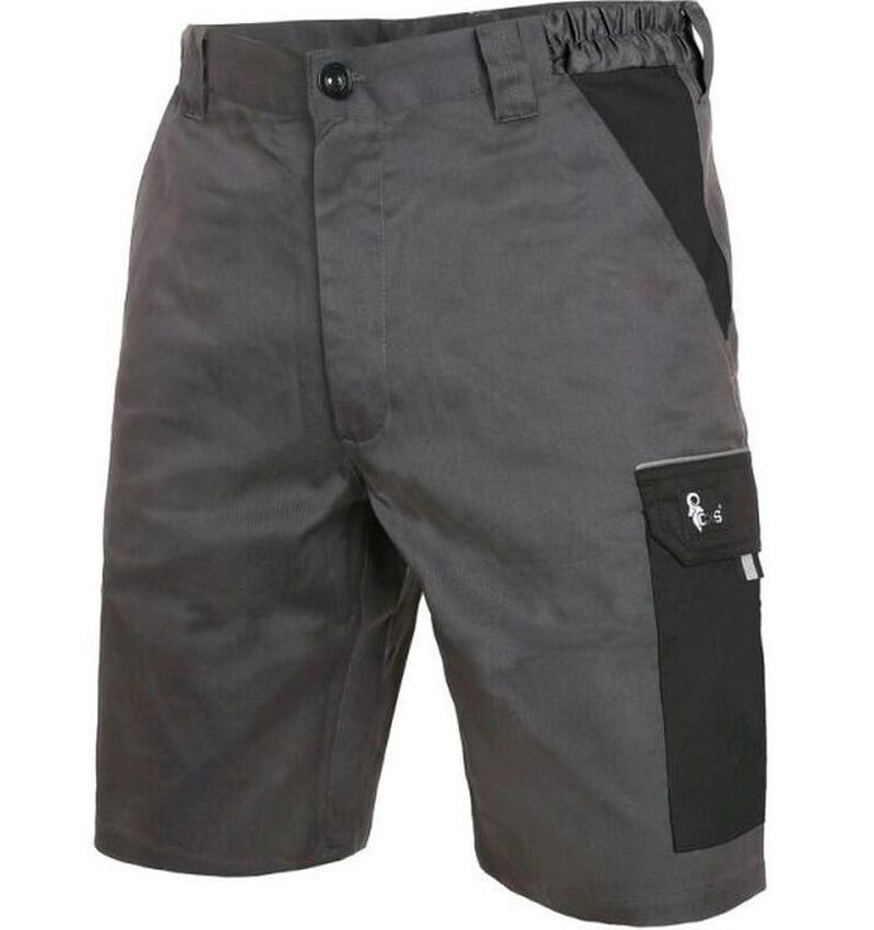 Pánské montérkové kraťasy, pas s poutky na opasek, přední klínové kapsy, boční kapsa s klopou, kapsa na skládací/ svinovací metr, zadní jednoduchá kapsa na pravé straně.
