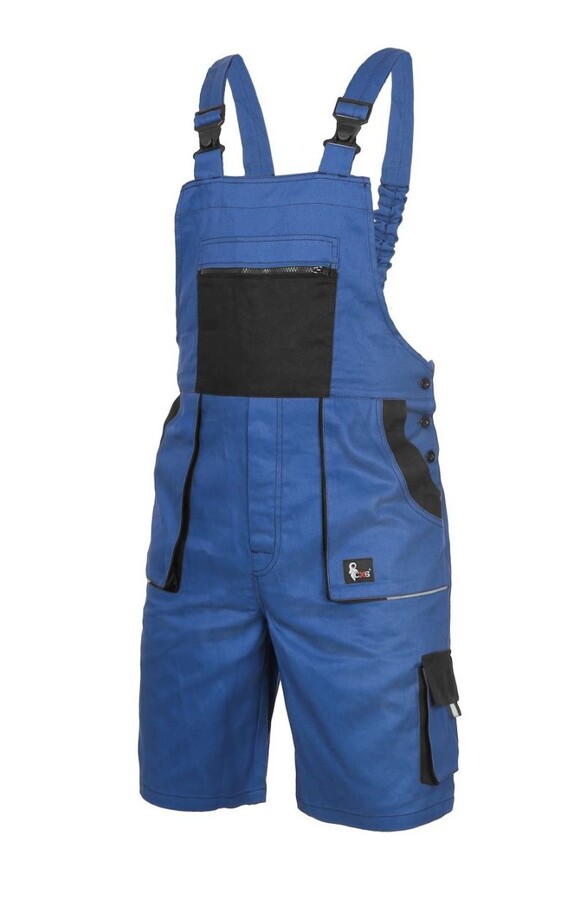 Pánské montérkové kraťasy s náprsenkou, náprsní kapsa na zip, pas na knoflíky, vzadu do gumy, přední kapsy, boční kapsa na svinovací / skládací metr, boční kapsa na mobil / peněženku, zadní kapsa s klopou, šle s gumou vzadu. Doporučené použití: letní pracovní oděv, stavebnictví, strojírenství, lehký průmysl, automobilový průmysl, logistika, skladová manipulace, spedice, autoservisy, údržba, montáže, zemědělství, učiliště, čerpací stanice, zahrada, hobby.
