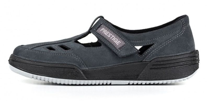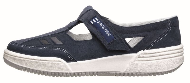 Letní obuv PRESTIGE je zcela novým typem obuvi, který vychází z požadavků zákazníků. Je vyrobena v modré barvě z přírodního semiše, který se vyznačuje hebkým vlasovým povrchem. Pro delší životnost semišového materiálu má hydrofobní = vodoodpudivou úpravu. Prodyšný, uvolněný, ale uzavřený střih spolu s použitými materiály zaručují vysoké pohodlí při nošení i v teplém počasí.