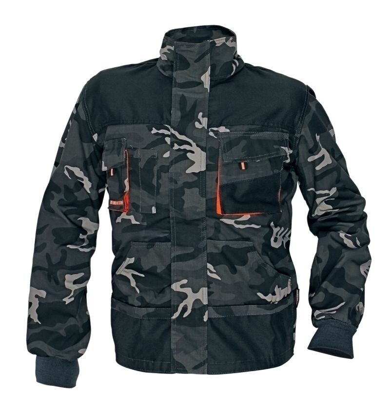 Montérková bunda/blůza pohodlného střihu a vysoké odolnosti • namáhaná místa vyztužena materiálem polyester 600D • odvětrání pod pažemi • zesílené zdvojené lokty • rukávy zakončené elastickou manžetou. Maskáčový vzor.
