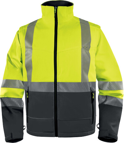 Vodoodpudivý softshell 2v1 s vysokou viditelností, Odnímatelná kapuce na zip, Odnímatelné rukávy