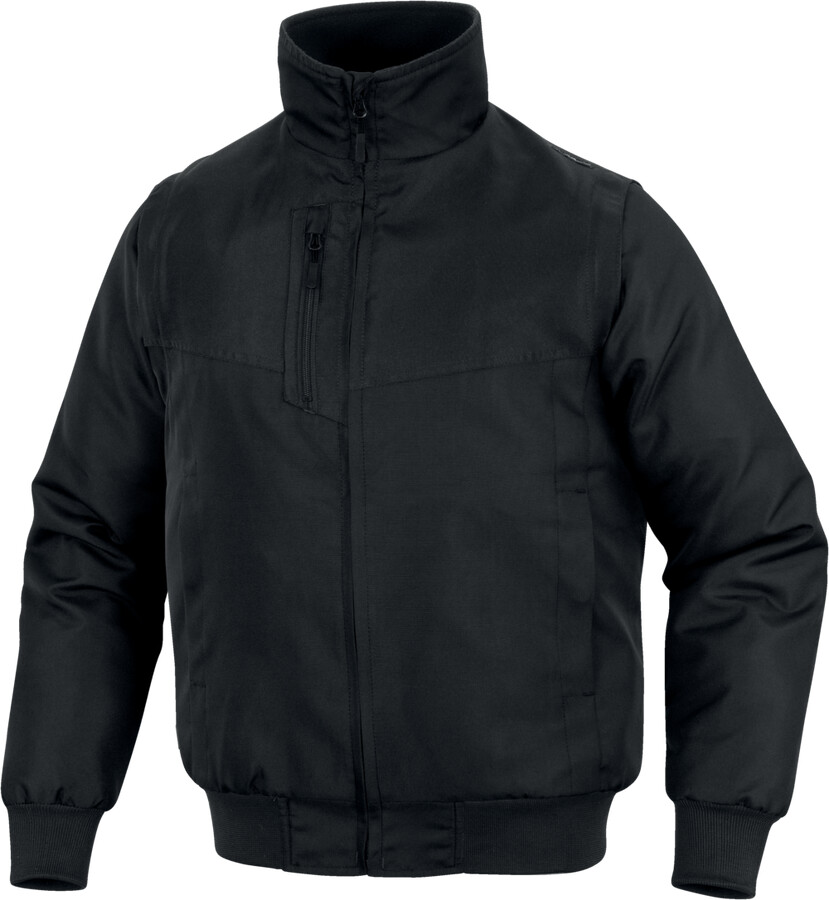 Bunda s odepínacími rukávy. Podšívka límce z materiálu polar fleece. Pletený pas a manžety. 5 kapes.