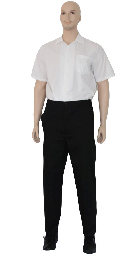 Pánské černé kalhoty, zapínání na knoflíky, 2 přední kapsy, 1 zadní kapsa. Vhodné pro kuchaře.