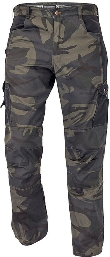 Pánské kalhoty z lehkého T/C twillu 190 g /m² • 2 zadní nakládané kapsy • 2 boční kapsy a 2 multifunkční kargo kapsy • zesílená část kolen • skvěle padnoucí střih • atraktivní design maskáč
