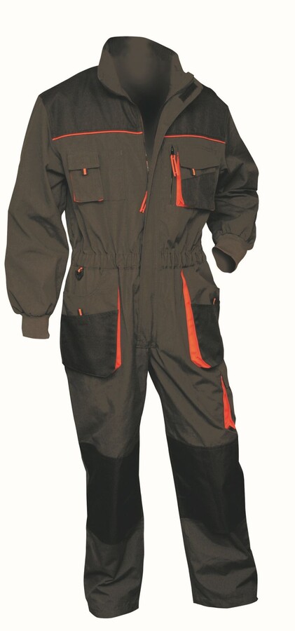 Kombinéza pohodlného střihu a vysoké odolnosti • namáhaná místa vyztužena materiálem polyester 600D • guma okolo celého pasu • zesílená zdvojená kolena pro vložení nákoleníků • poutko na kladivo • vyrobené pro náročné podmínky