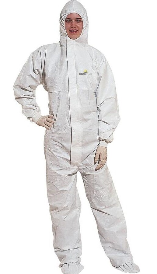 Kombinéza s elastickou kapucí. Netkaný Deltatek® 5000. Zapínání na zip z obou stran překryté lištou. Elastické stahování v pase a na kotnících. Manžeta na zápěstí. Individuálně a vakuově balené.