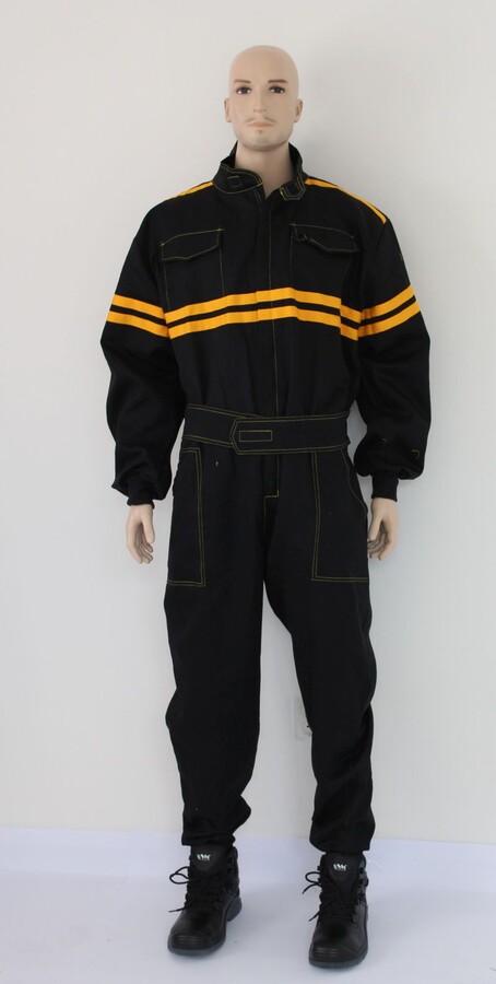 Montérková kombinéza, u krku stojáček na suchý zip, 2 náprsní kapsy s klopou na suchý zip, 2 přední a 1 zadní kapsa,
