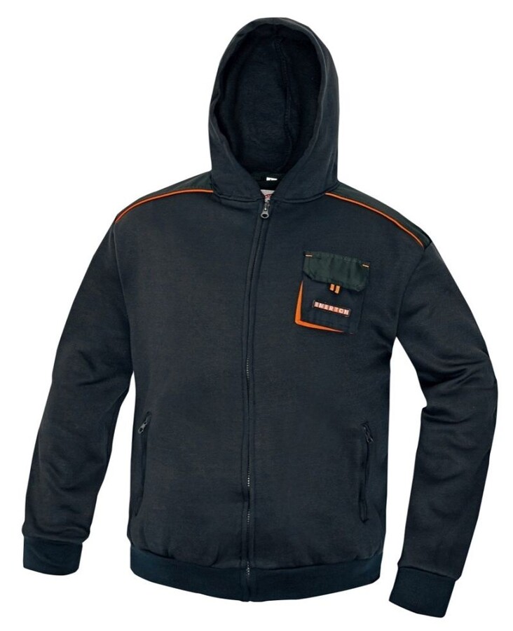 Pánská mikina s kapucí • celopropínací • vnitřní strana mikiny je počesaná • spodní lem a manžety rukávů z žebrovaného úpletu s příměsí elastanu