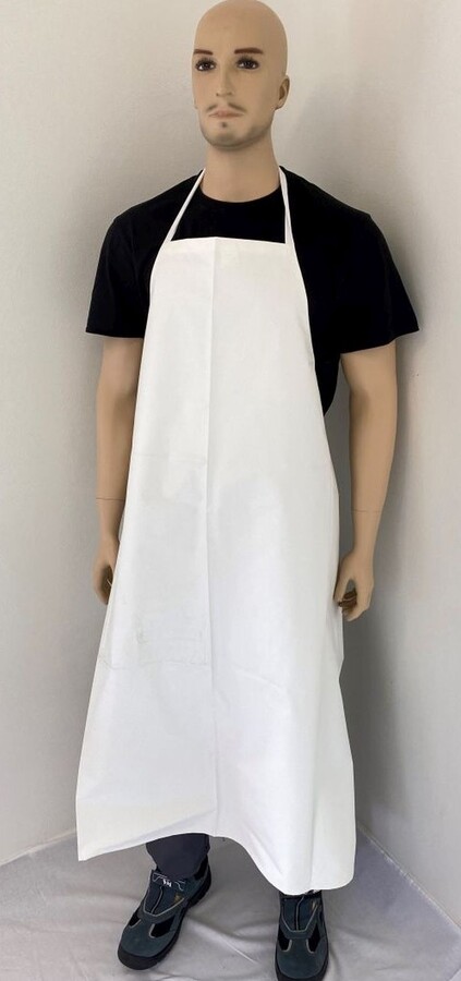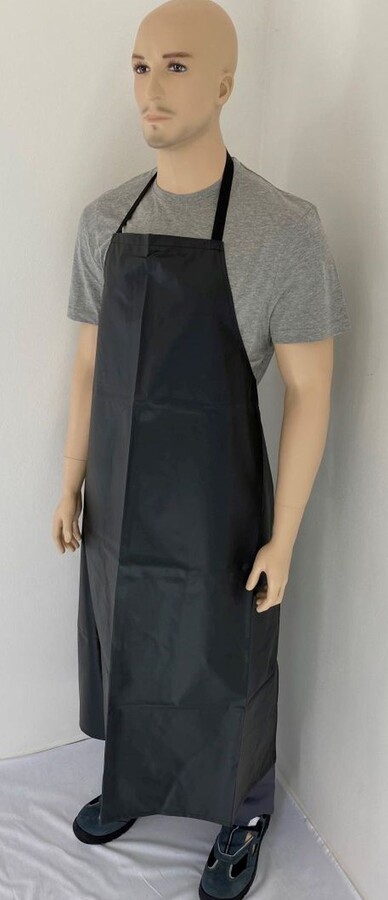 Pogumovaná zástěra, spodní strana bavlněná látka, vrchní PVC, omyvatelná.