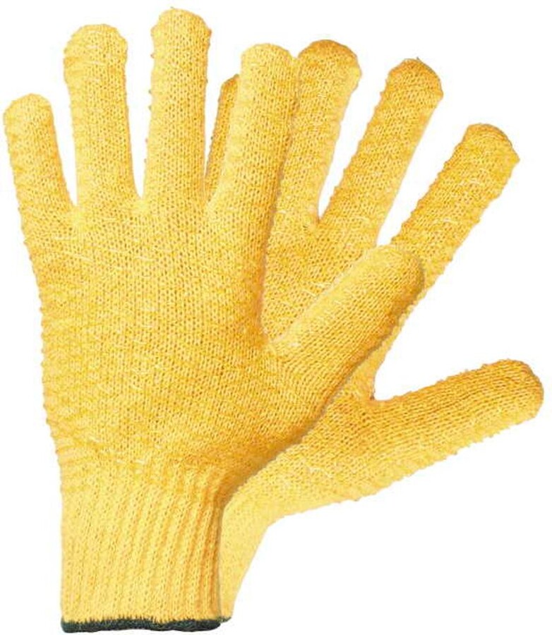Pletené bezešvé oboustranné rukavice za směsi nylon/polyester s polymerní mřížkou na povrchu.
