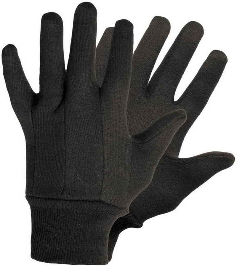 Rukavice s pružným nápletem z hnědé bavlněné teplákoviny.