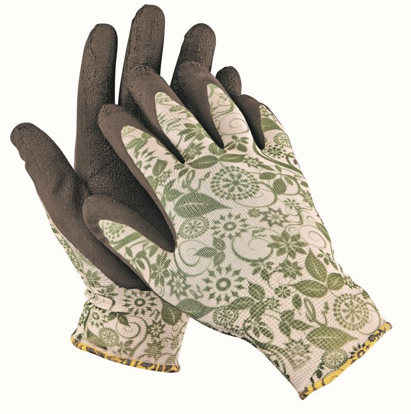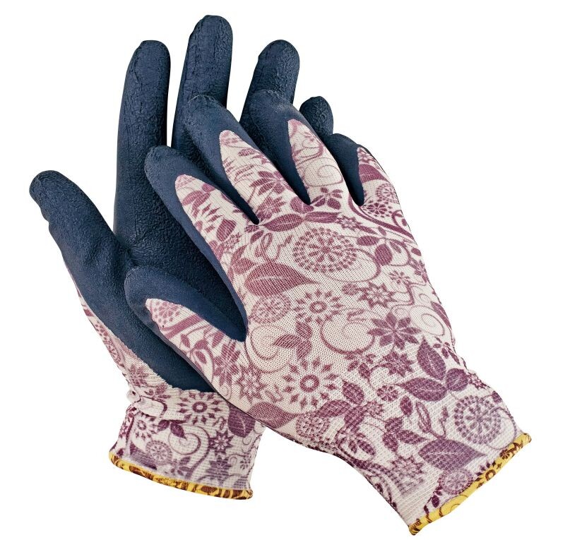 Bezešvé rukavice z nylonu s pružnou manžetou, máčené v pěnovém latexu.