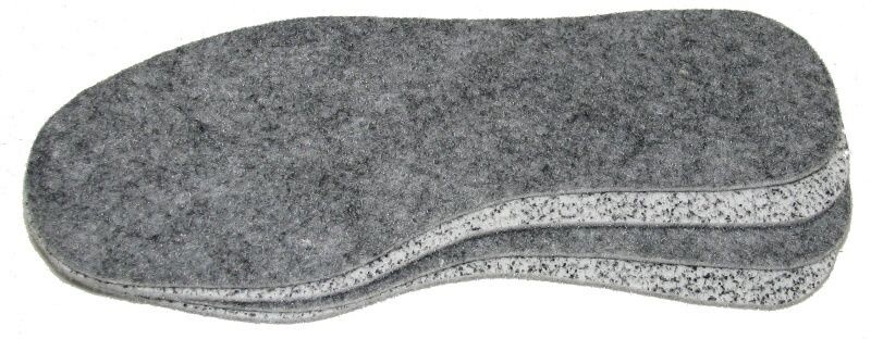 Šedé vložky do obuvi (obuvnické stélky) síla 5 - 6 mm. Dají se použít do všech druhů obuvi. Pozor jsou silnější tak aby bylo v botě dostatek místa. Vrchní strana je šedá spodní šedobílá.