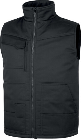 Zateplená vesta s mnoha kapsami (řada MACH). Zapínání na zip krytý lištou. Stahování ve spodní části elastickou šňůrkou. 9 kapes.