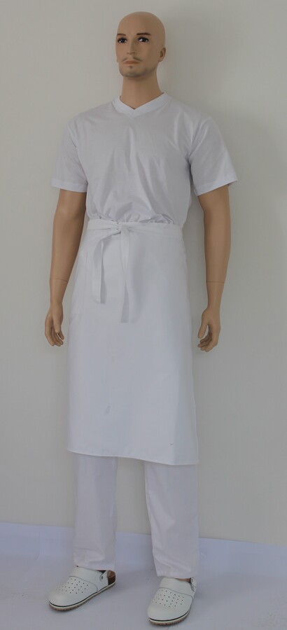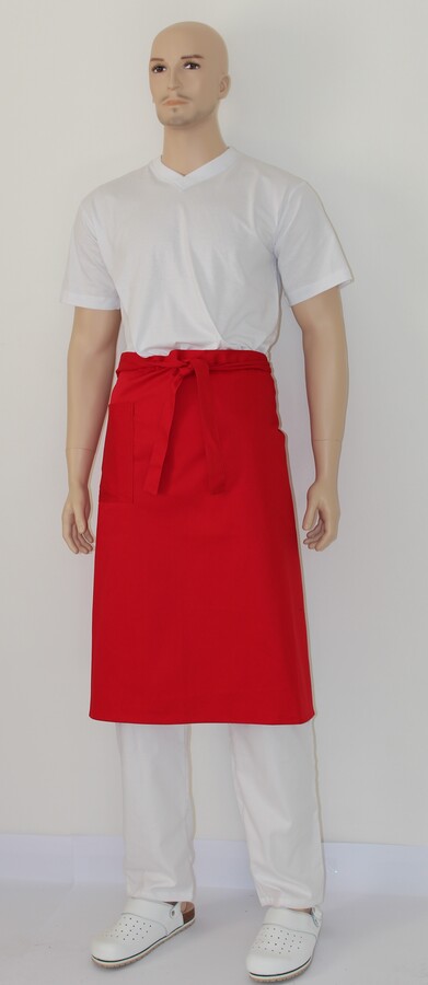 Pasová zástěra, délka 70 cm, šířka 90 cm, kapsa 20x20 cm.